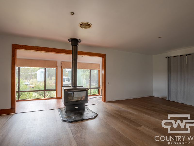 The residence is in good condition and of generous proportions, offering three well-sized bedrooms (two with built-ins, master with ensuite), a sunroom leading to a dedicated office, and an additional room suitable as a fourth bedroom. Power is supplied via grid connection with supplementary solar, and gas is connected. A purpose-built meat house is located to the rear of the home for food preservation.